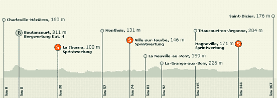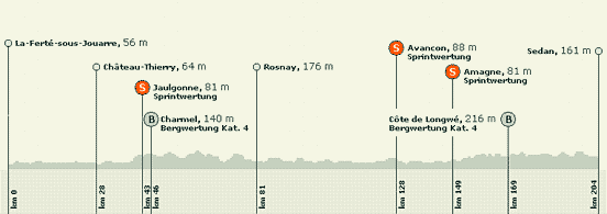 der Zielort Sedan waren je Etappenort der Tour. Aber die Strecke